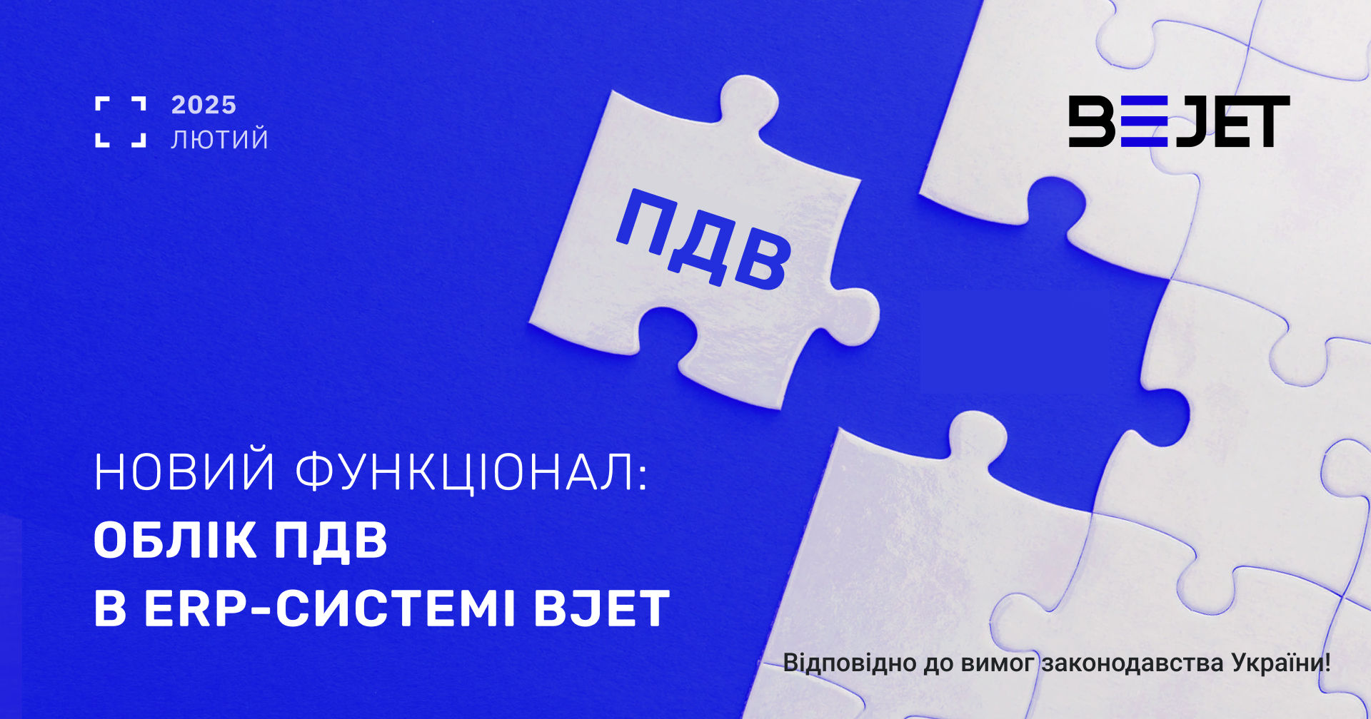 10 лютого 2025 року компанія BJet повідомила про реліз нового функціоналу ERP-системи BJet 11.1.13.0. В оновленій версії рішення доступний новий модуль — облік ПДВ.
