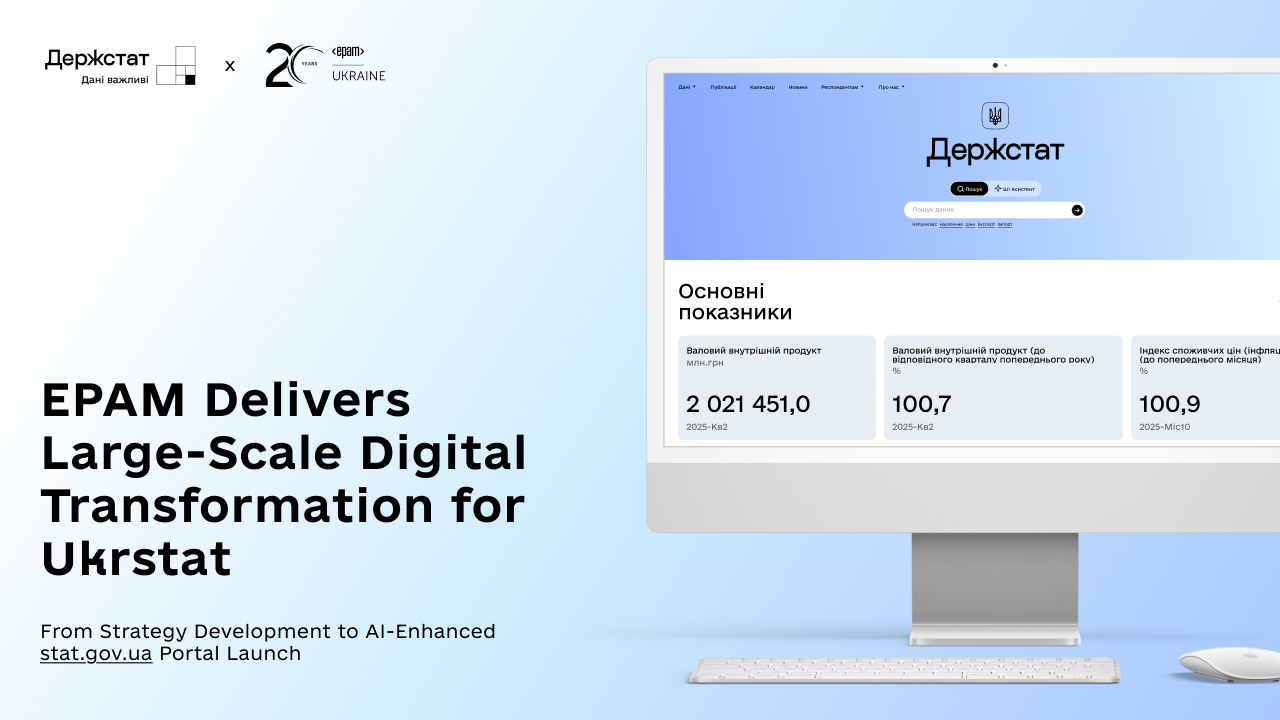 “Our collaboration with EPAM has been a cornerstone and a strategically vital part of the digital transformation of the State Statistics Service. Thanks to the EPAM team, we have laid the foundation for tectonic shifts in how we produce official statistics and have set an transormative course for development. The new official statistics portal is not just a modern digital platform, but also an implementation of global best practices, including the use of AI to simplify data access. This project positions Ukraine as an innovator within the European statistical community. We are grateful to the EPAM team for their professionalism, innovation, and true partnership – this is exactly how we are building Ukrstat 2.0.”