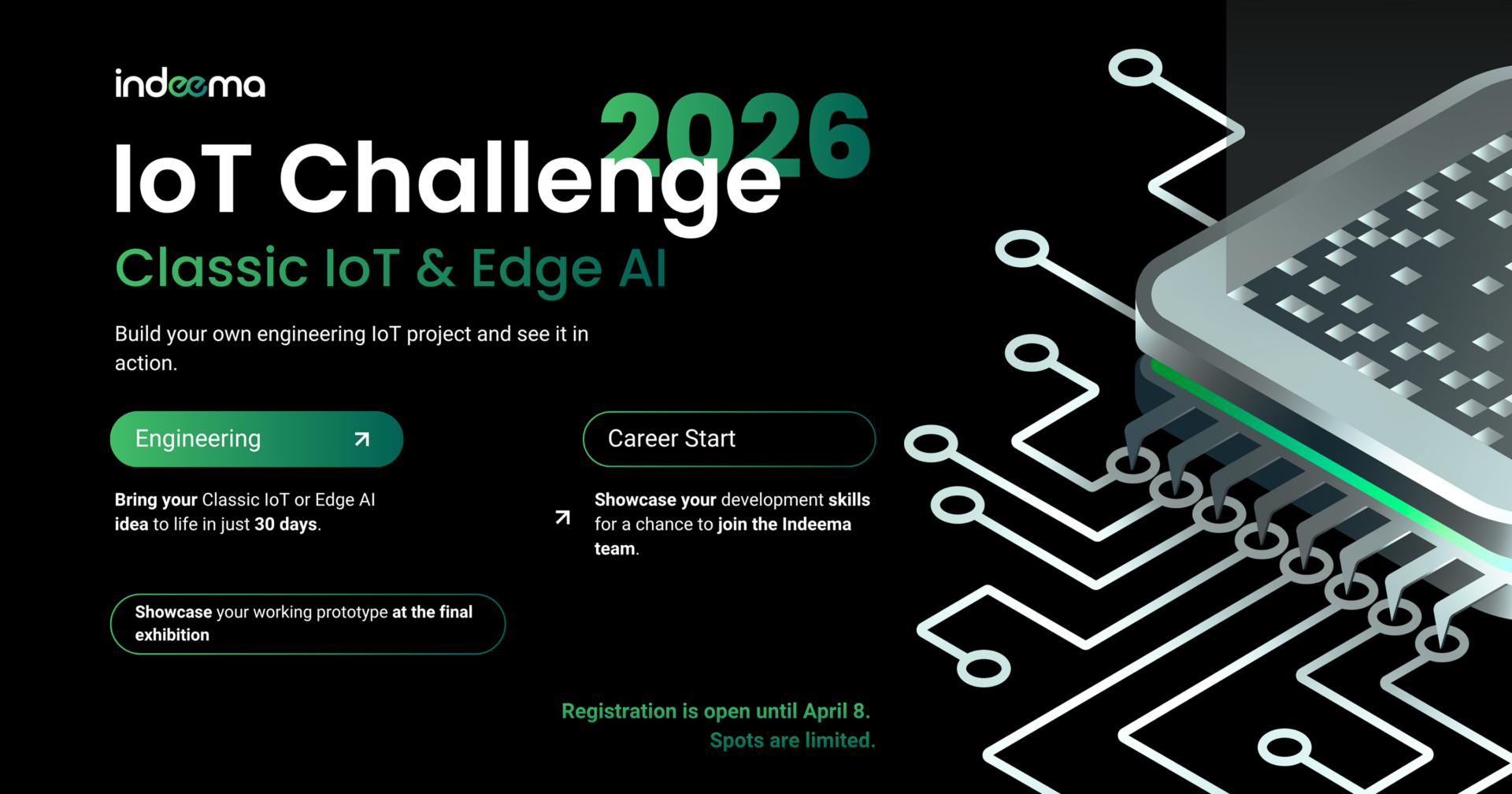 Indeema, in partnership with the Ivan Franko National University of Lviv, officially announces the launch of the fourth annual engineering contest, IoT Challenge 2026. This year’s theme, Classic IoT & Edge AI, offers participants a choice between a traditional “device-to-cloud” approach and the development of autonomous systems with local data processing. This year, students from […]