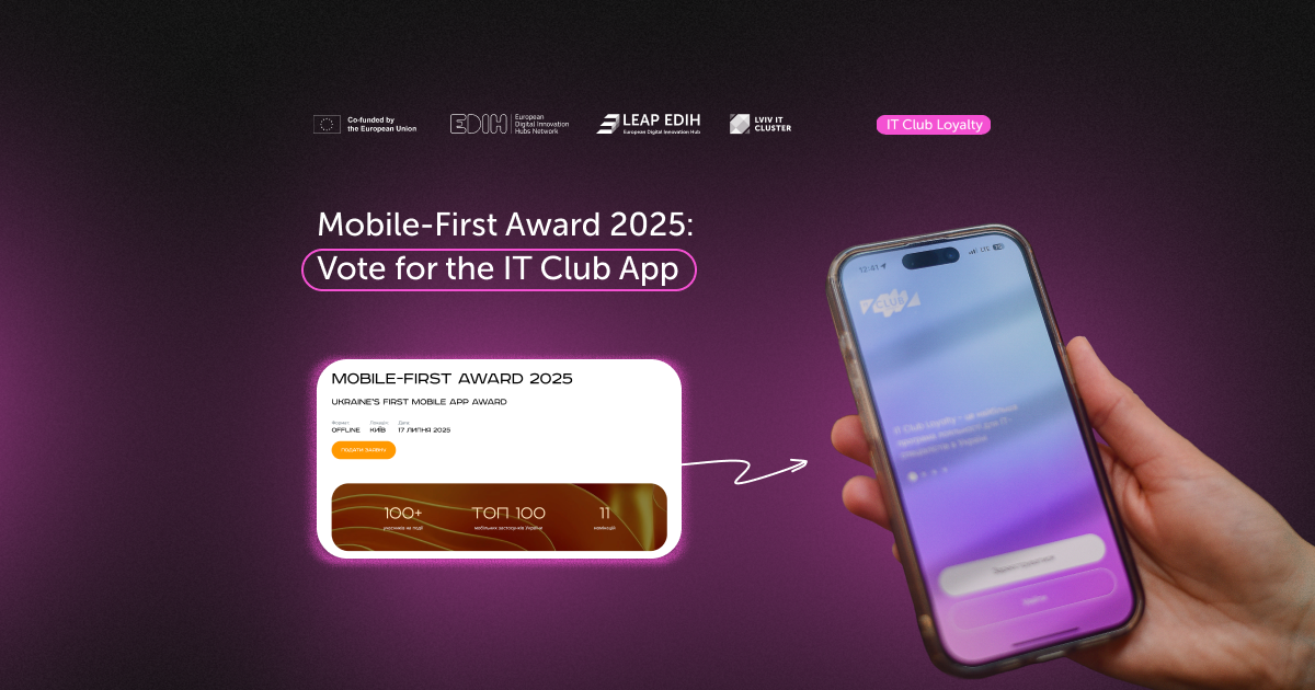 Lviv IT Cluster is participating in the Mobile-First Award 2025. The IT Club mobile app has made it to the shortlist. Overall, the organizers of the Mobile-First Award 2025 received over 120 applications. The IT Club app became a finalist for the Mobile-First Award 2025 in the “Best HR Mobile App” category. Open voting for […]