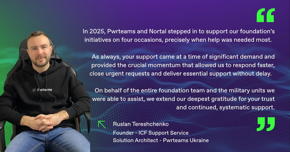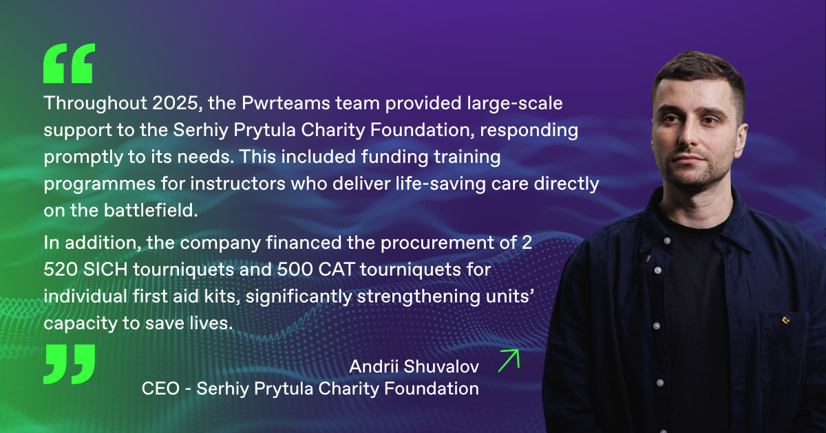 In 2025, Pwrteams made ten charitable donations totalling EUR 112 063 to support Ukrainian defenders and civilians affected by the war. The funds were distributed among three trusted organisations working across defence, humanitarian aid and rehabilitation. The largest share, EUR 69 807, was donated to the Serhiy Prytula Charity Foundation, one of Ukraine’s leading initiatives […]