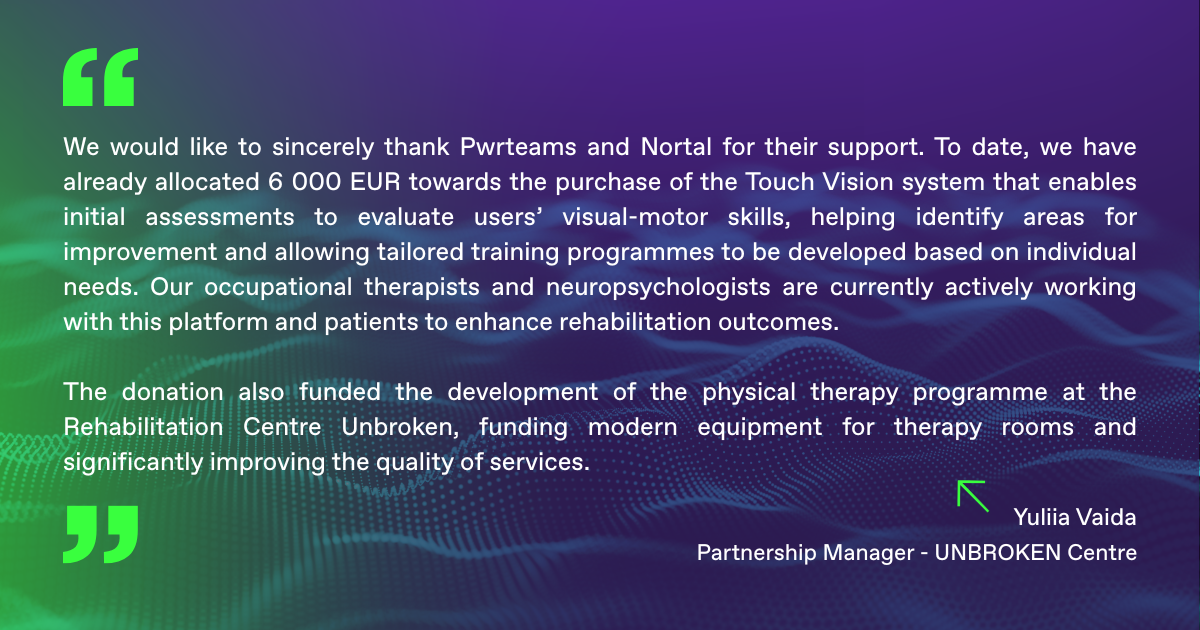 All donations made throughout 2025 were channelled through the Ukraine Support Fund – an initiative established in 2022 in response to the full-scale invasion of Ukraine. The fund was launched by Pwrteams together with its parent company, Nortal, a global leader in strategic transformation and technology with operations across Europe, North America and the Middle East. The Ukraine Support Fund focuses on delivering timely, targeted and impactful support to Ukraine by backing projects that provide critically needed equipment, technology and humanitarian aid.