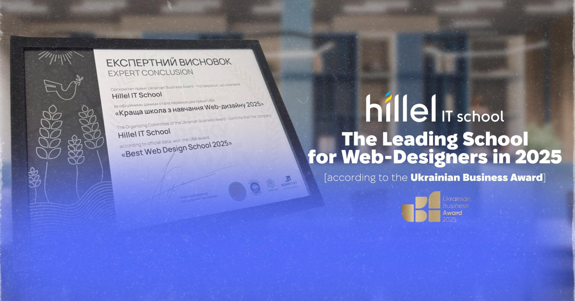 Hillel IT School has been recognized as the best school for web design education in Ukraine by the Ukrainian Business Award 2025. Experts from UBA evaluated the country’s leading educational institutions using powerful audit tools such as Clarity Project, Serpstat, and YouControl. Ten IT centers made it to the final shortlist.