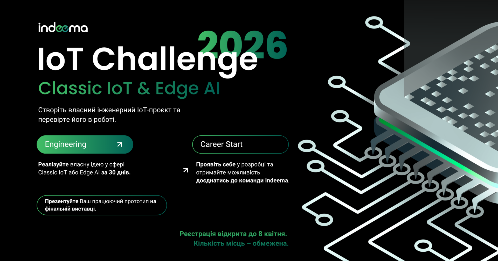 Компанія Indeema спільно з Львівським національним університетом імені Івана Франка офіційно оголошують старт четвертого інженерного конкурсу IoT Challenge 2026. Головна тема цього року – Classic IoT & Edge AI, що передбачає вибір між класичним підходом «пристрій-хмара» або розробкою автономних систем із локальною обробкою даних.