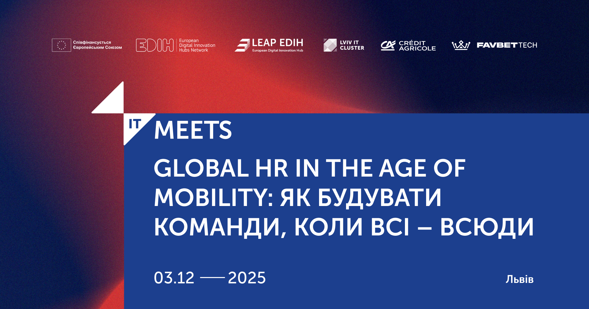 Як аналітика, технології та культура взаємодії допомагають створювати стійкі міжнародні команди — дізнавайтеся на дев’ятій у цьому році конференції IT Meets, яку організовує Львівський ІТ Кластер. Подія об’єднає провідних експертів із управління талантами, які поділяться практичними кейсами, окреслять ключові тенденції 2025 року у сфері найму, розвитку й релокації фахівців. Конференція відбудеться у BANKHOTEL — сучасному бізнес-готелі в історичній частині Львова.