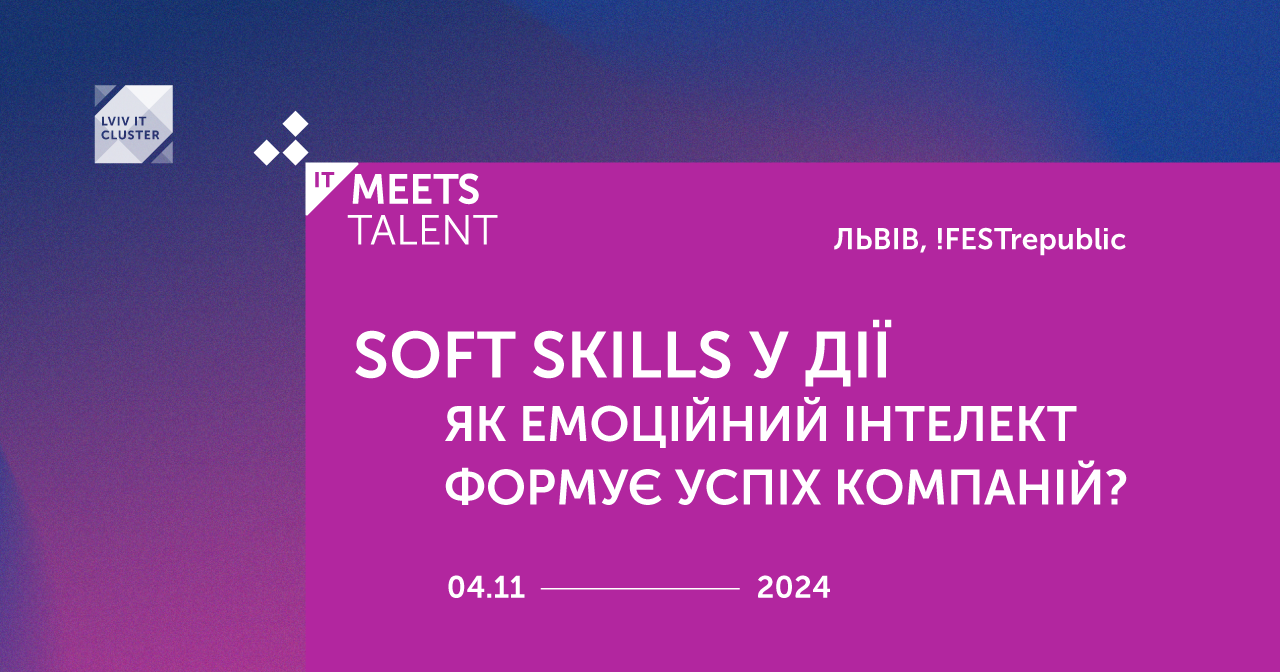 Львівський ІТ Кластер анонсує останню конференцію IT Meets 2024. Цього разу на тему Soft Skills у дії: Як емоційний інтелект формує успіх компаній? Подія відбудеться 4 грудня у Львові та об’єднає HR-спеціалістів, рекрутерів, бренд-менеджерів та PR.
