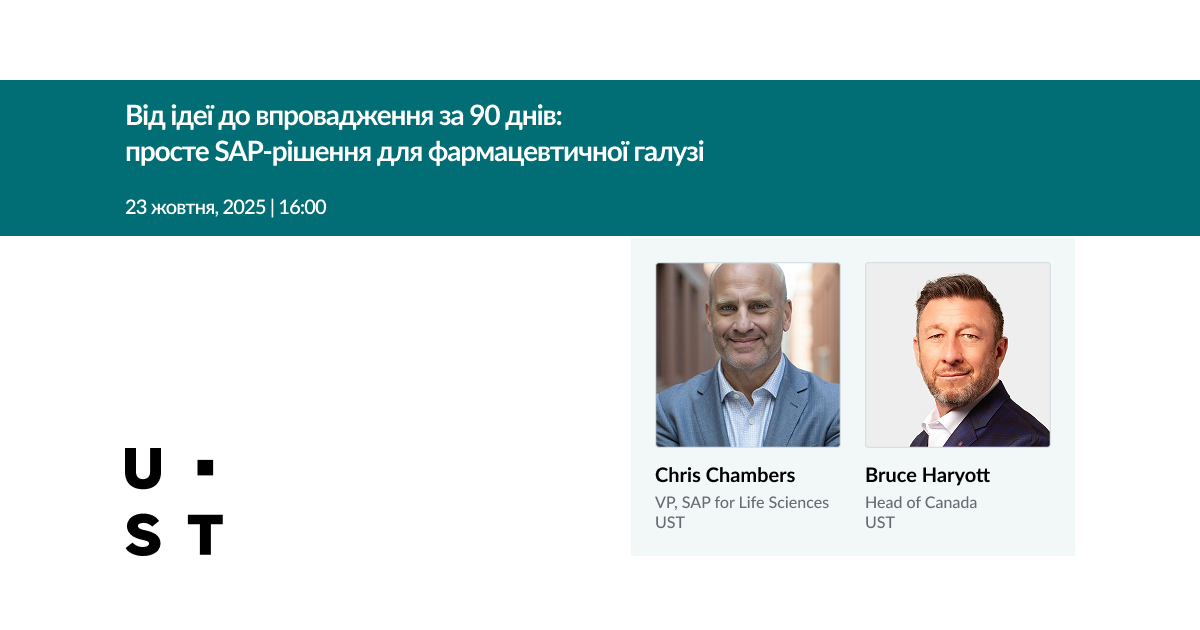 Запрошуємо приєднатися до онлайн воркшопу від компанії UST, присвяченого впровадженню ефективних SAP-рішень для фармацевтичної галузі та суміжних сфер.