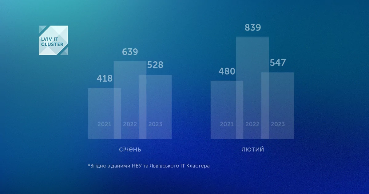 Якщо ж порівнювати період січень-лютий 2023 року до аналогічного періоду 2021 року, то сукупна експортна виручка ІТ-послуг стала більшою на 19,7%, що у доларовому еквіваленті $177 мільйонів.