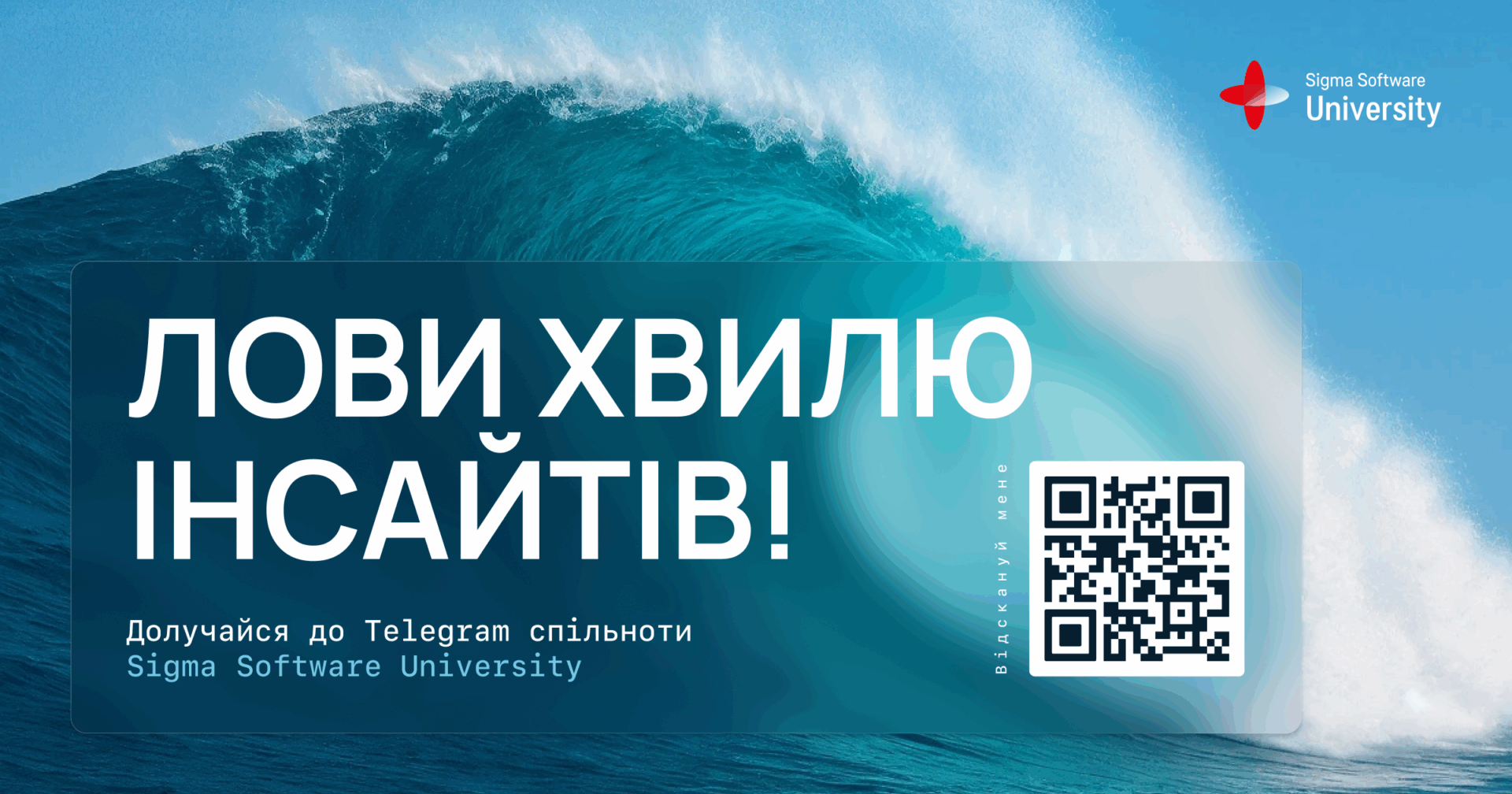 Sigma Software University — це освітня платформа, створена компанією Sigma Software для обміну знаннями та розвитку IT-спільноти в Україні. Університет має власне Telegram-ком’юніті, де спеціалісти Sigma Software та інші учасники діляться лайфхаками, порадами, цікавими кейсами з робочого життя, а також можливостями від університету: лекції, курси, події та інше. Запрошуємо вас доєднатися! На вас чекають: Долучайтеся […]