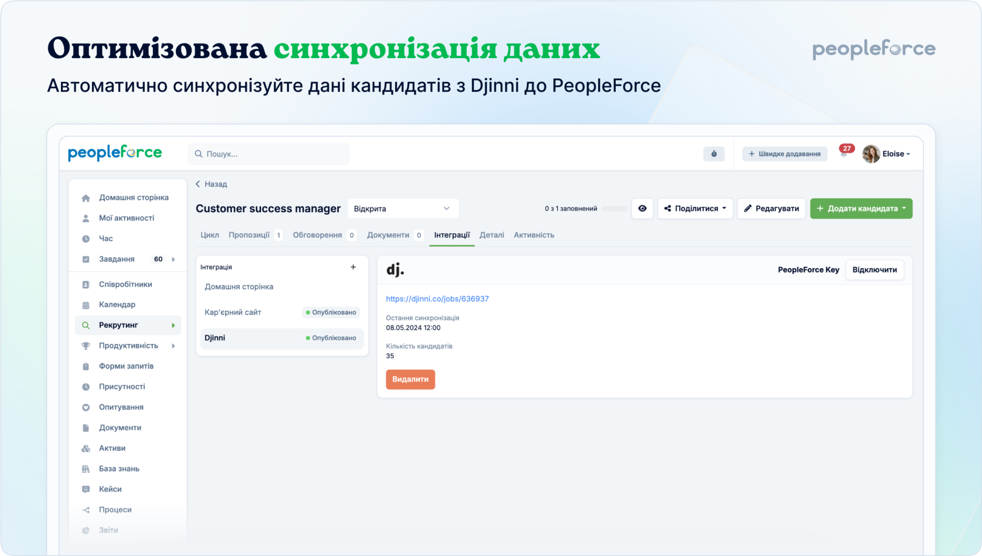 “Ми втілюємо місію зробити PeopleForce хабом для всіх потреб у сфері HR-менеджменту та рекрутингу. Ця перша у своєму роді інтеграція дозволяє нашим клієнтам автоматизувати публікацію вакансій, тому тепер цей процес стає швидшим та ефективнішим. Завдяки безперервній синхронізації даних кандидатів з Djinni до PeopleForce, ми даємо нашим користувачам можливість повністю керувати своїм рекрутингом з єдиної платформи”, – говорить Ендрю Сетінік, CEO PeopleForce.