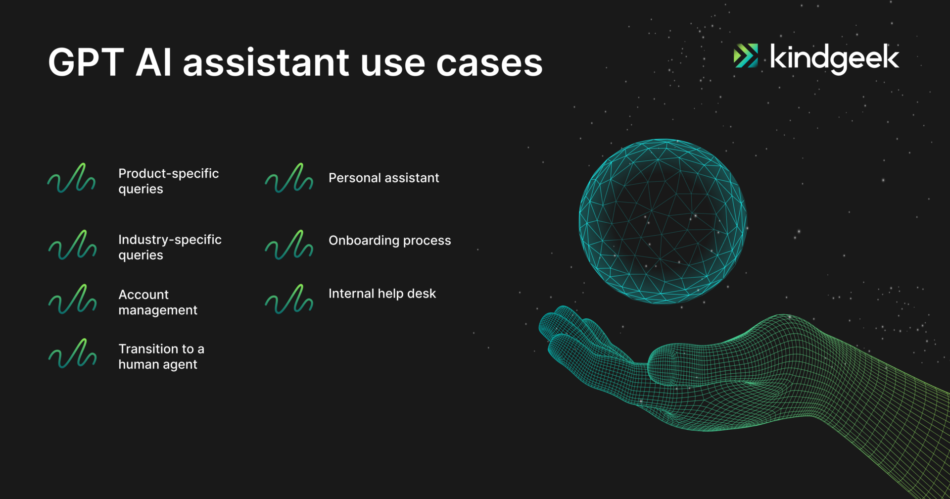 Від наскрізної інтеграції віртуальних асистентів на основі ШІ, які відповідають потребам вашого бізнесу і робочих процесів, до технічних консультацій, для оптимізації операцій та покращення взаємодії з клієнтами – ми готові до ваших індивідуальних запитів. Наші інтеграційні, технічні консультації та оперативні інженерні послуги забезпечать непомітну інтеграцію AI Асистента у ваші робочі процеси. Дізнатись більше про ці послуги можна за посиланням – https://kindgeek.com/ai_assistant