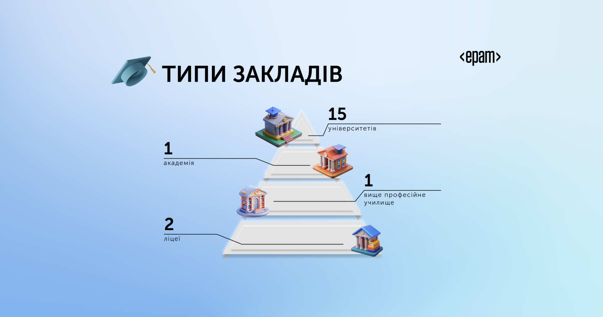 Кількість закладів освіти, які отримали техніку від ЕРАМ Україна, отримали 19. Більшість з них – університети.